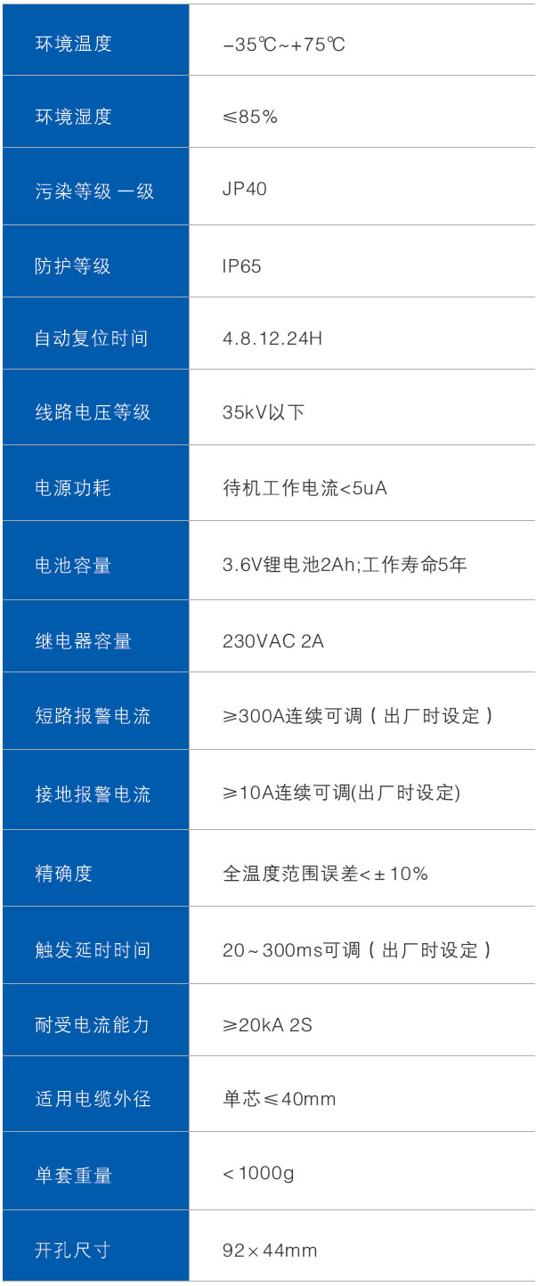 當供電線路有短路或接地故障發生時,短路或接地電流產生的電磁場變化,使固定在電纜上的傳感器中測量線圈產生脈沖信號,當脈沖信號的值的大小達到或超過設定的故障電流值時,故障指示器會自動記憶故障狀態,故障指示燈閃爍發出故障指示,同時通過遠程報警接口,將故障 信號傳遞給監控中心,工作人員通過故障指示信號能夠迅速準確地找到線路故障位置,及時排除故障,恢復電網供電。